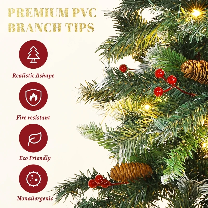 [ENVIRONMENTALLY FRIENDLY] Made of premium and environmentally friendly PVC materials, this Christmas tree is safe, smooth and friendly to the environment, which do not prick or scratch your hands.