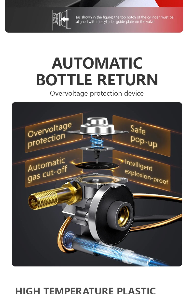 Overvoltage Protection: The gas cylinder will automatically disconnect with the stove if the air pressure is too high.