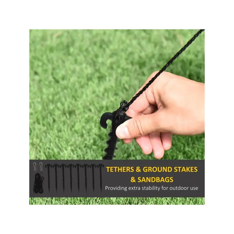- Includes eight stakes, four drawstrings and three sandbags to keep it anchored on windy nights