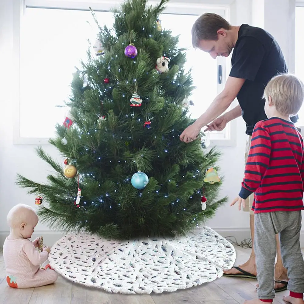 Christmas Tree Floor Skirt Soft Plush Tree Skirt Ornaments Christmas Tree Mat With Leather Patterns For Decorations Holiday Part