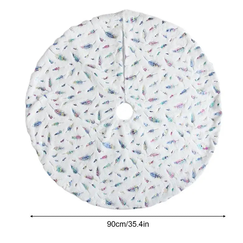 1.【Exquisite and Attractive】The Christmas Tree Skirt is a one-of-a-kind decoration that is exquisite and has a glittering feather pattern. Due to its rich color and snow-white texture, your Christmas tree stands out more.