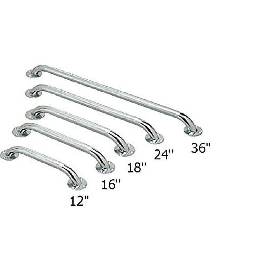 Chrome grab bars 16" help prevent falls in the shower. Shower bars are a great safety measure for any shower. 1 1/4" knurled chrome diameter, chrome-finished bars may be used horizontally or vertically. These grab bars meet the ADA 1. 5" specifications from the wall. Chrome grab bars 16" help prevent falls in the shower. Shower bars are a great safety measure for any shower. 1 1/4" knurled chrome diameter, chrome-finished bars may be used horizontally or vertically. These grab bars meet the ADA 1. 5" specifications from the wall.