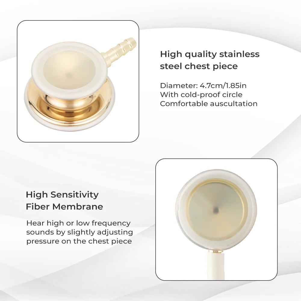 Excellent acoustic effect: The stethoscope is equipped with high-quality medical TVC tube, matte texture zinc-nickel alloy chest film and high-sensitivity fiber membrane, which has good auscultation effect, even with polyester earplugs, and has excellent external noise reduction effect. It can be widely used for cardiovascular and respiratory auscultation in hospitals, clinics, schools or homes.