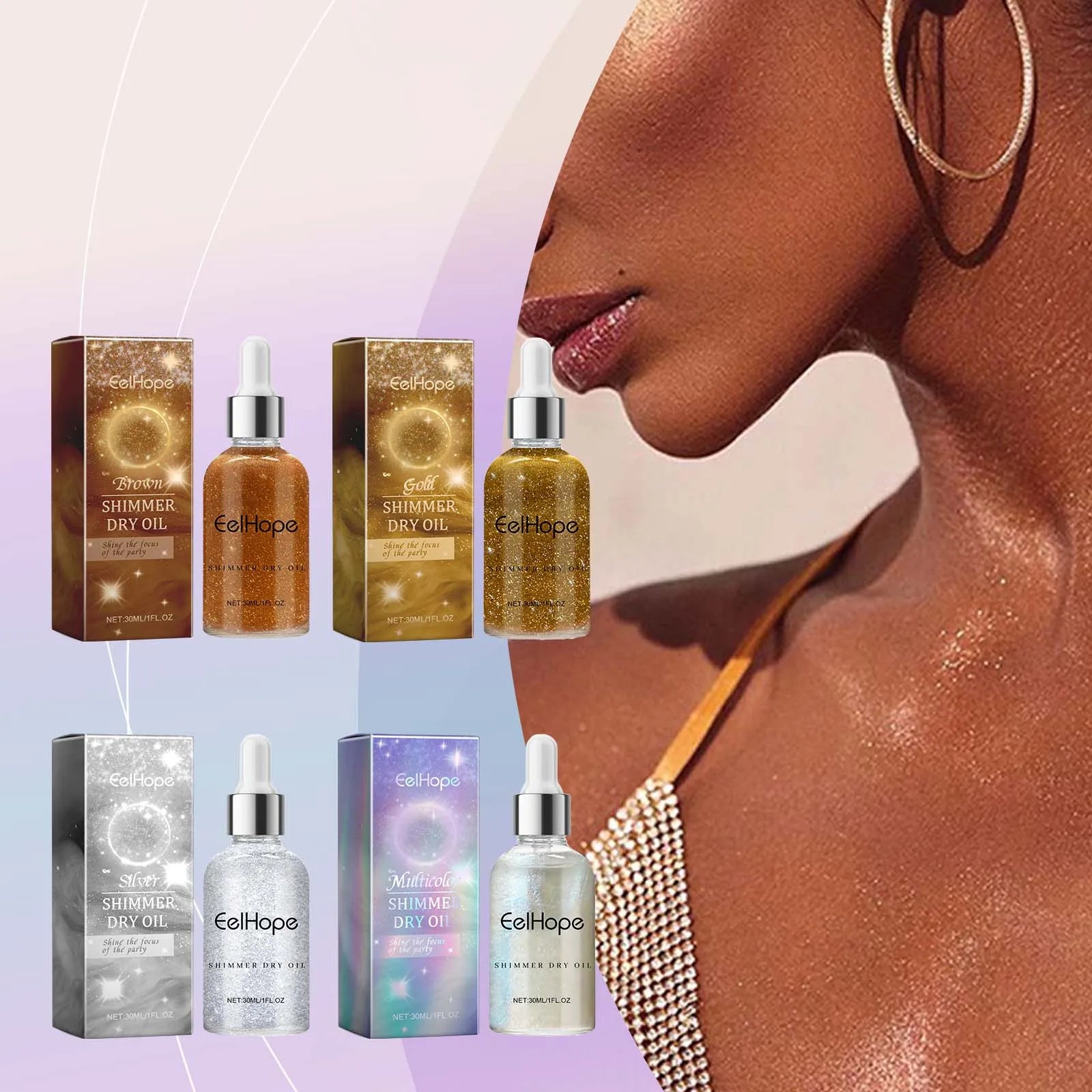Eelhope Body Glitter Oil Natural Face Shimmer Shiny Moisturizing Waterproof Lasting Skin Brightening Liquid for Summer Party