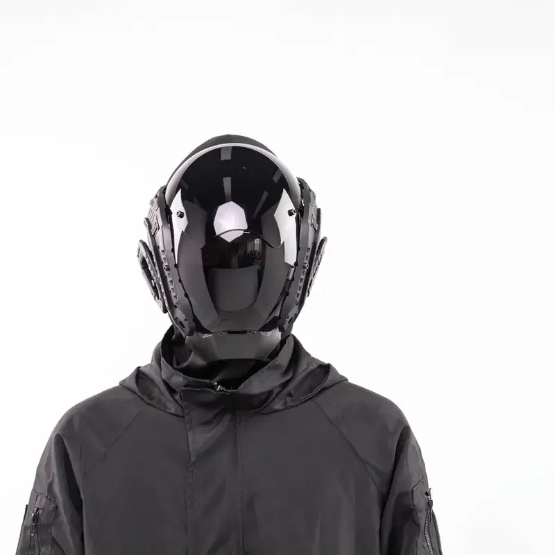 Handmade mechanical style Cyber futuristic technology mask, black unlit punk mask, Halloween party, party, dance, bar