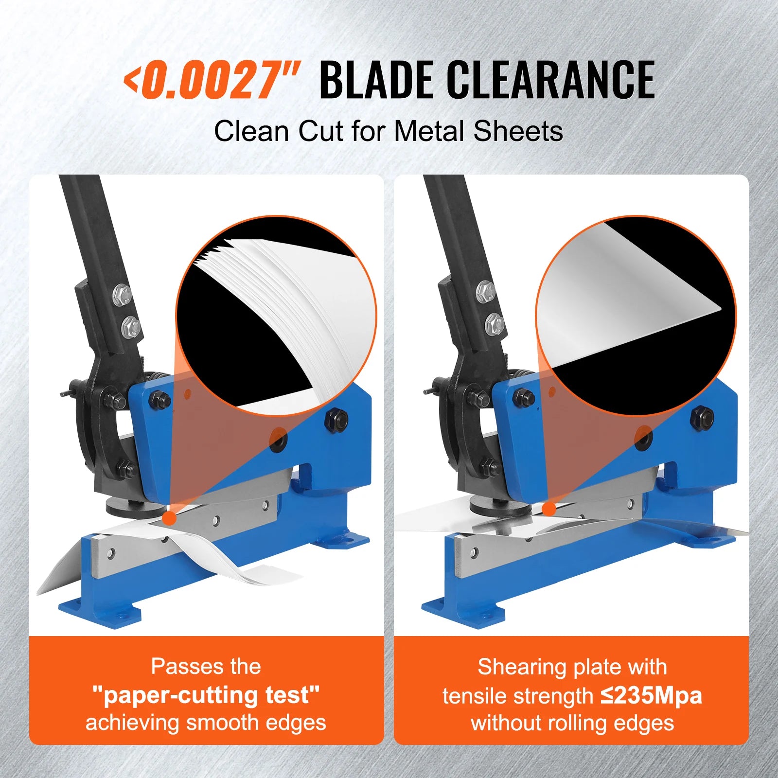 Smooth Cutting Edges: The blade gap is <0.0027"", ensuring smooth and burr-free edges when cutting steel materials, preventing waste and damage.