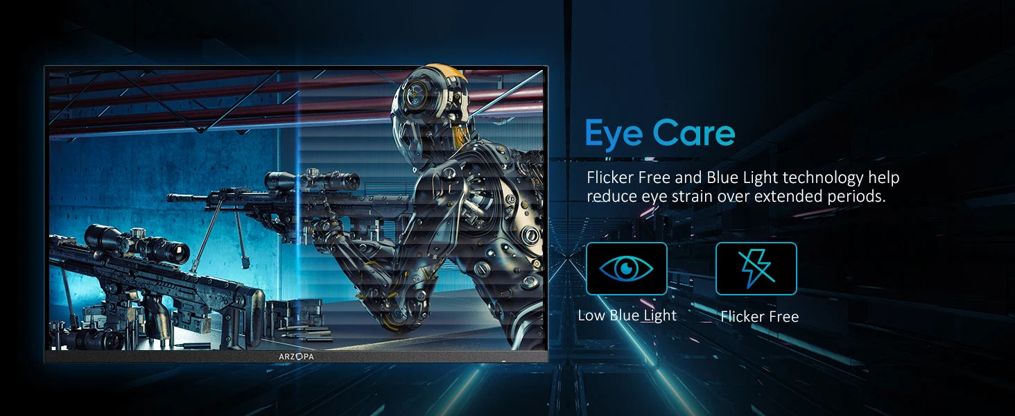 Flicker Free and Blue Light technology help reduce eye strain over extended periods.