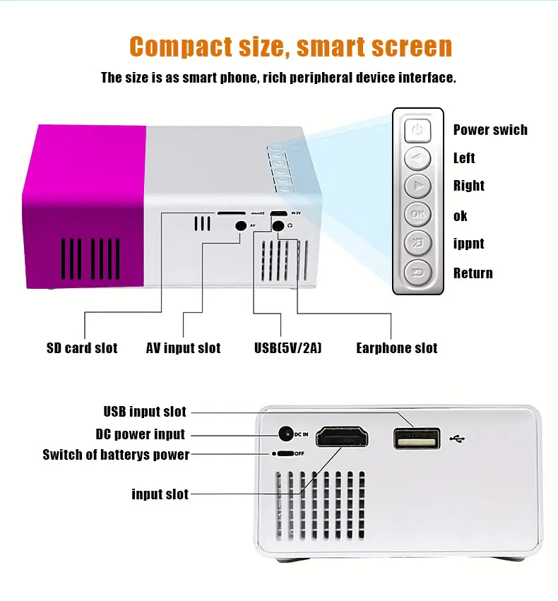 New LED Portable Projector Dlp Full Hd 1000 Lumen HDMI USB Audio Home Theater Media Player Gift Outdoor Travel Mini Projector