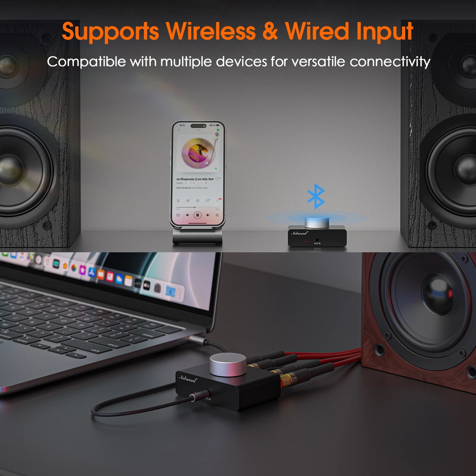 Seamless Connectivity: Enjoy versatile compatibility with Bluetooth and AUX input, allowing effortless pairing with phones, tablets, PCs, and more. Stream music wirelessly or connect via AUX cable for a stable, high-quality audio experience.