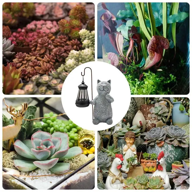 Outdoor Solar Lights Resin Cat Waterproof Lantern Weather-Resistant Garden Lights for Holiday Gift Elegant Ornament for Garden