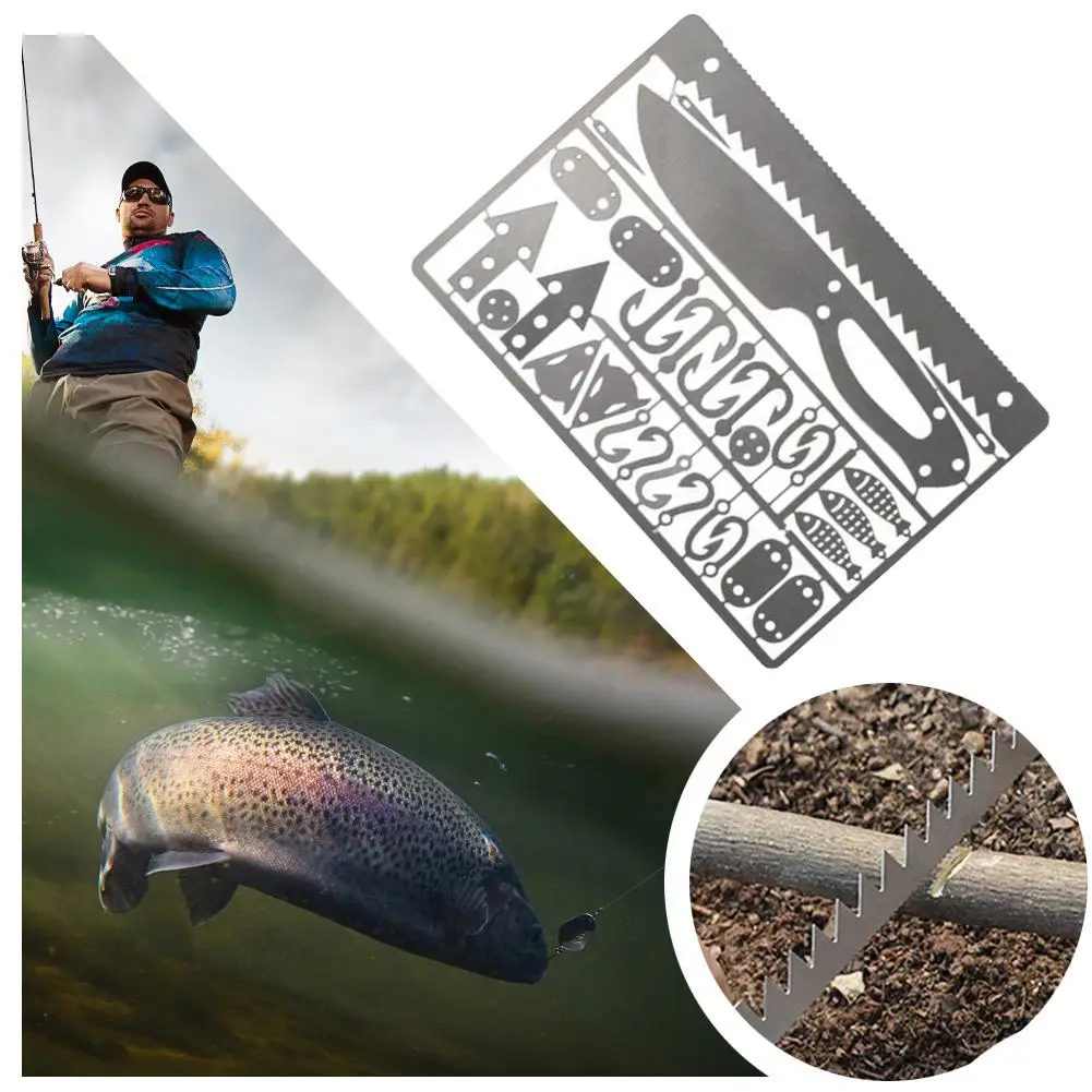 Stainless Steel Outdoor EDC Survival Fishing Hook Card Portable Camping Hiking Multifunctional Tool Cards