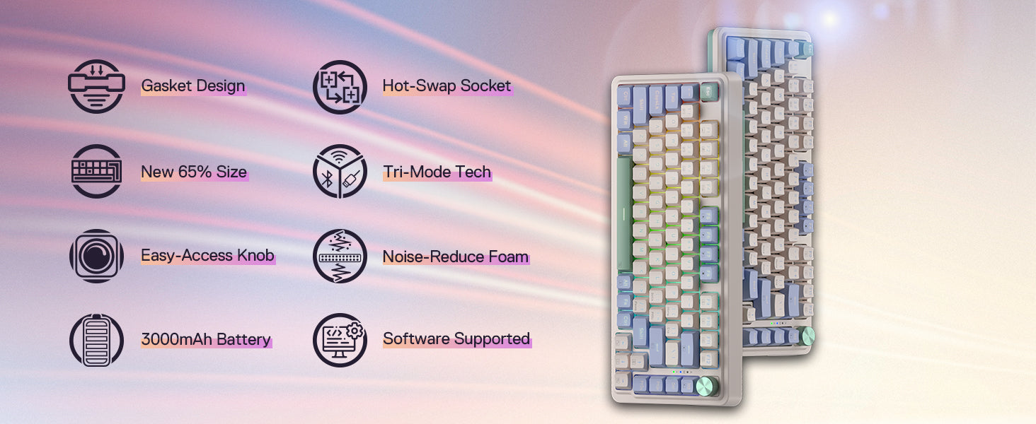 Redragon K673 PRO 75% Wireless Gasket RGB 3-Modes 81 Keys Compact Mechanical Hot-SwapGaming Keyboard