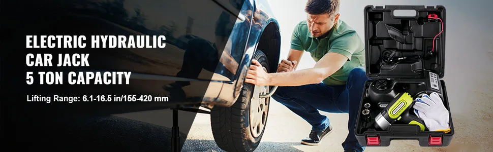 Best Helper for Car Repair: Max. Capacity: 5.0 tons/11000 lbs. Lifting Range: 5.3-14.2 inch / 135-360 mm. This electric hydraulic jack can be used as a powerful jack, a tire inflator pump, or a LED working light. Moreover, this kit is equipped with an electric wrench. It is a good helper when changing tires in roadside emergencies and at-home garage repairs. If you are changing tires on the road, a reflective warning triangle will need to be placed on the ground. Our case displays a red triangle warning, providing added security.